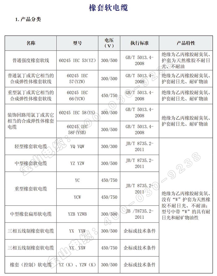 金山橡套軟電纜的產(chǎn)品介紹包括YZ YC YX YZW YCW YXW等系列橡套軟電纜產(chǎn)品的規(guī)格參數(shù)及重量等介紹。
